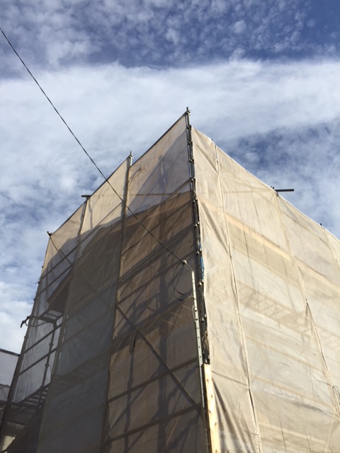 昼の弁当を取りに行って現場に戻ると、屋根の梁が施工されていました。