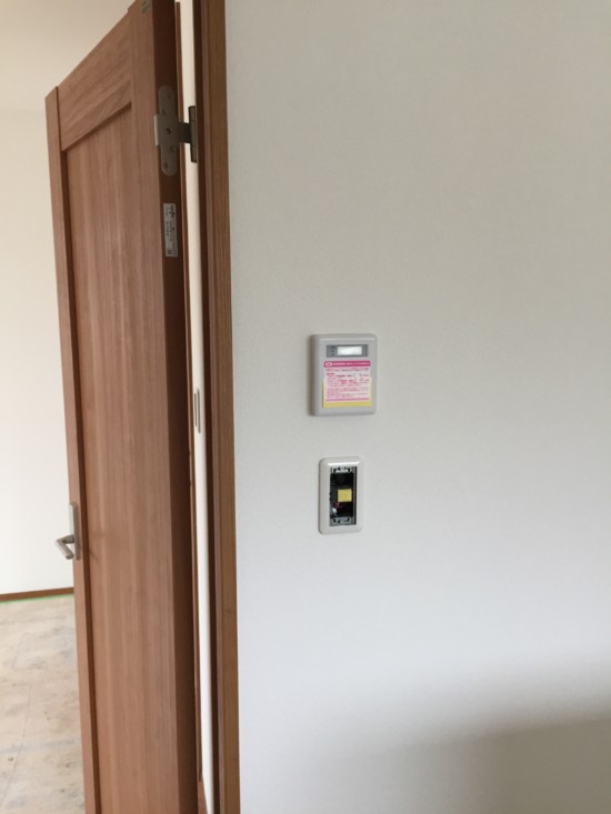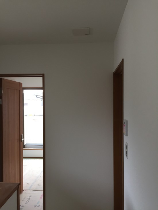 小屋裏換気の室内給気用のプッシュ式レジスターが2F廊下天井にあります。